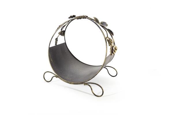 Дровница изготовлена из прутка ф8,0мм, в основании лист 0,8мм. Добавлены элементы горячей ковки в виде бабочки, листьев и веток. Цвет черный с золотой патиной. Покрыта термостойким лаком и эмалью.